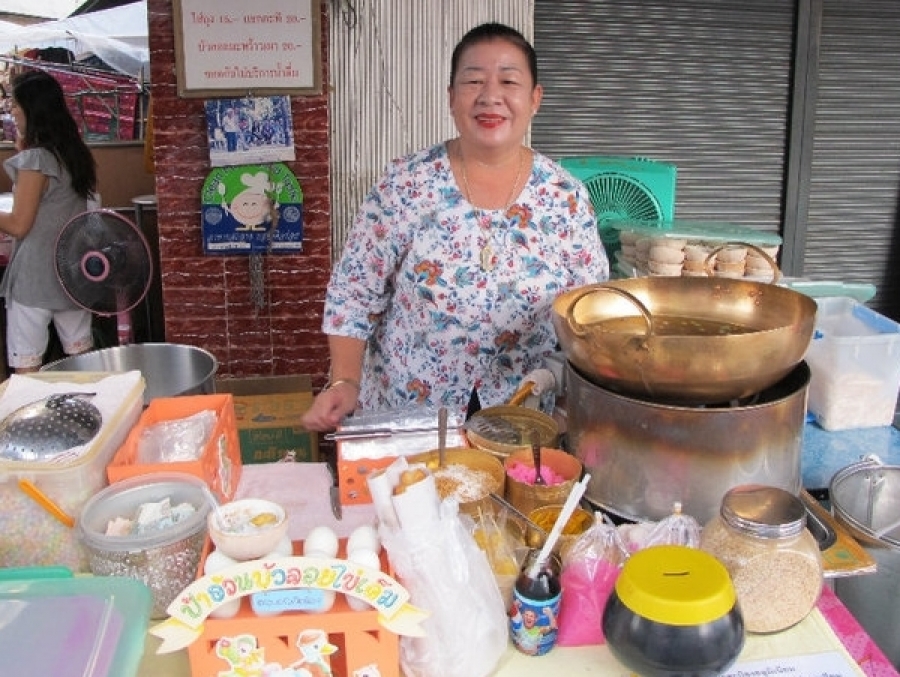 胖婶店的手持椰奶汤圆,其特点使客户非常喜欢,因为胖婶做椰奶汤圆装在香蕉叶里,这是皇宫级的椰奶汤圆,因胖婶曾在诗纳卡琳皇太后的厨房里工作过。